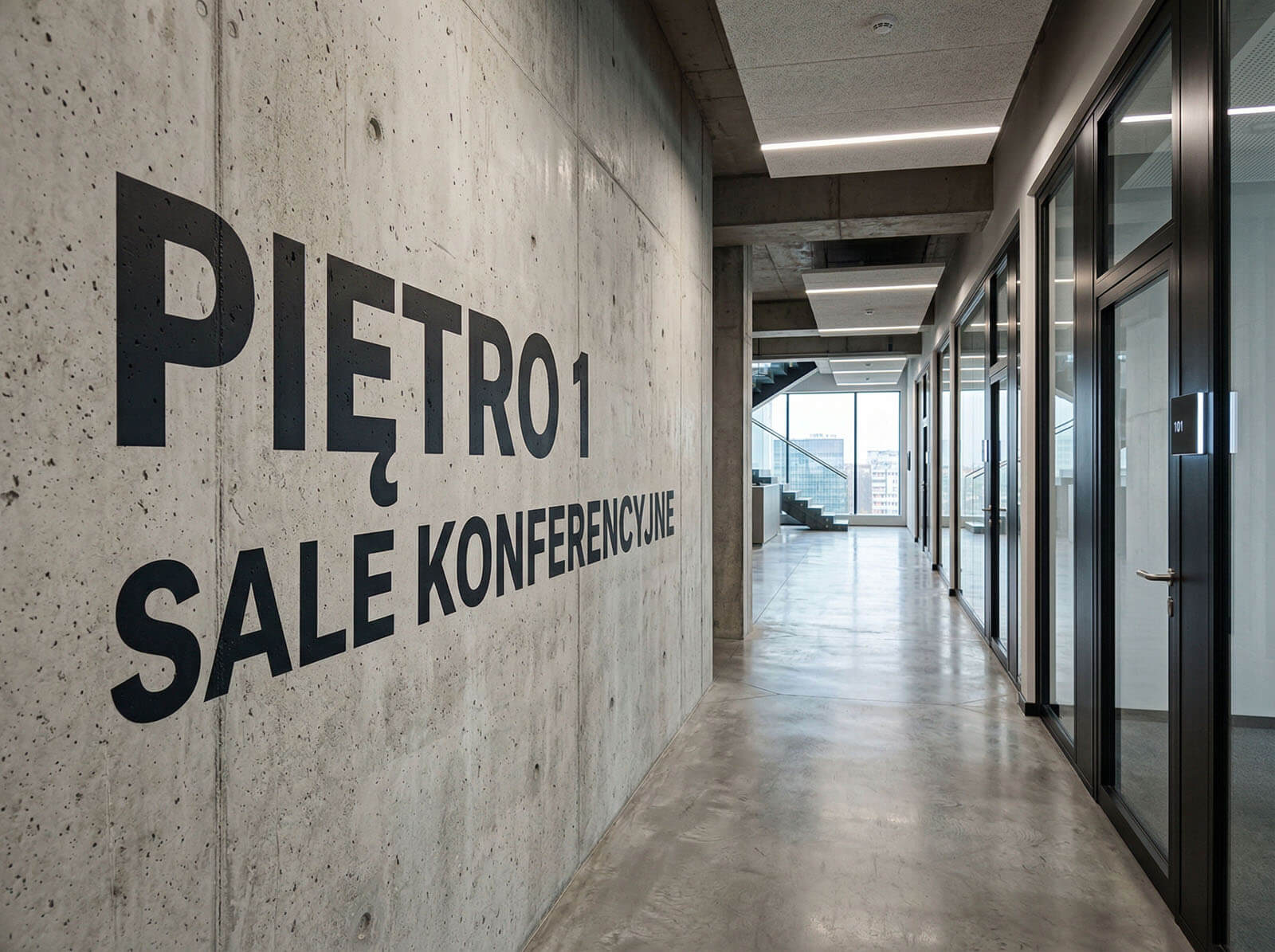 Loga i identyfikacje wizualne w recepcjach i biurach, motywacyjne grafiki w salach konferencyjnych, branding i grafiki dekoracyjne na korytarzach, aranżacje w open space.